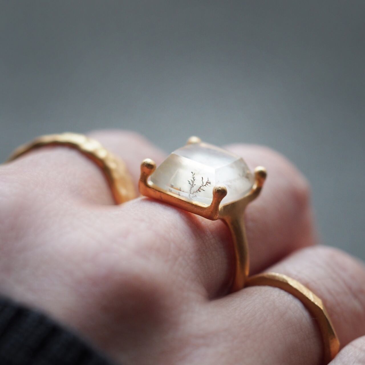 水晶のなかに植物を閉じ込めたようなデンドリテッククォーツ。